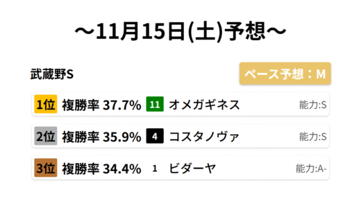 武蔵野S!デイリー杯2歳S!データサイエンス競馬予想-2025/11/15(土)-