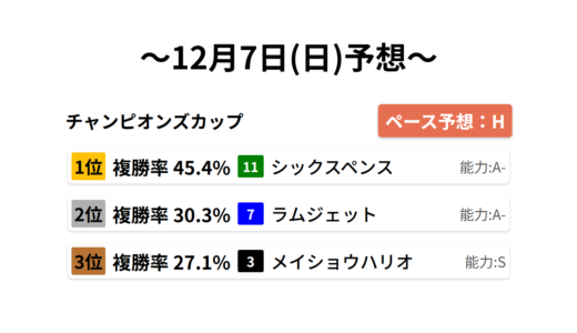 G1チャンピオンズカップ!データサイエンス競馬予想-12月7日(日)-