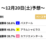 | 複勝率 | 馬番 | 馬名 | 能力 | 性齢 | 斤量 | 騎手 | 脚質 |
