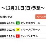 | 複勝率 | 馬番 | 馬名 | 能力 | 性齢 | 斤量 | 騎手 | 脚質 |