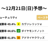 | 複勝率 | 馬番 | 馬名 | 能力 | 性齢 | 斤量 | 騎手 | 脚質 |