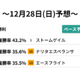 | 複勝率 | 馬番 | 馬名 | 能力 | 性齢 | 斤量 | 騎手 | 脚質 |