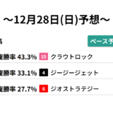 | 複勝率 | 馬番 | 馬名 | 能力 | 性齢 | 斤量 | 騎手 | 脚質 |